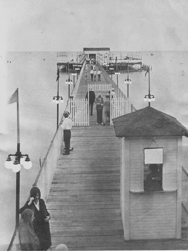 The true heyday of Luna Pier arrived in the 1920s, an era of optimism, jazz, and moonlit revelry. In 1920, local entrepreneurs unveiled an ambitious centerpiece for the community, a long wooden pier extending boldly out into Lake Erie, with a grand dance pavilion built over the water. This impressive structure was christened “The Luna Pier,” a name that captured the romance of the night (luna meaning moon) and the nature of the structure itself. At dusk, strings of lights would twinkle along the pier’s railings, and the sound of live music would begin to float across the lake. Luna Pier quickly earned a reputation as one of the best spots for dancing under the stars in all of Michigan. In fact, at this pier you could literally dance over the water, with the waves rolling beneath the wooden floorboards as couples swayed to the music.