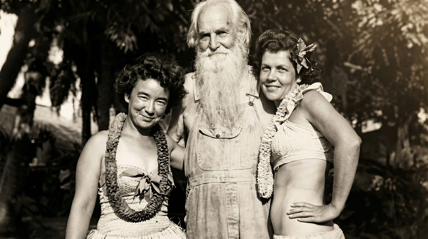 Despite living alone on a scrubby island, Silas was far from a recluse in personality. People who met him invariably described him as friendly, talkative, and hospitable – hence the nickname the “Hospitable Hermit” or “Happy Hermit.”He welcomed visitors who boated over to see him, whether they were curious locals, weekend adventurers, or boys out exploring. Children were especially fond of Silas. On at least one Christmas Eve in the late 1940s, the white-bearded hermit donned a Santa Claus costume and hosted local kids, handing out little gifts to the eleven wide-eyed children gathered around his palm-frond Christmas tree. A sepia-toned photograph from that night shows Silas with a jolly grin beneath his Santa beard, surrounded by delighted youngsters – a heartwarming scene that captures how this supposed loner was very much a beloved figure in the community.